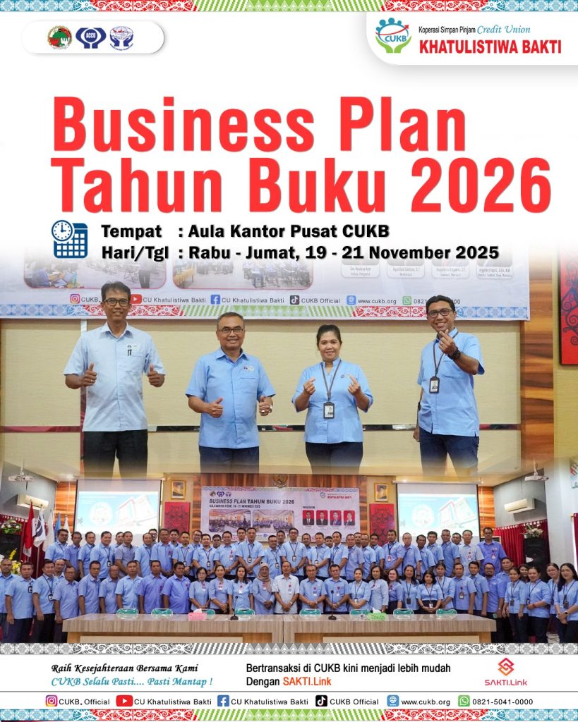 Jadwal Pendidikan Dasar Credit Union Khatulistiwa Bakti September 2025 Tempat Pelayanan : Kantor Cabang Padang Tikar Tanggal Kegiatan : Rabu, 08 Oktober 2025 Fasilitator : Armidun Tempat Pelaksanaan : Jalan Medan Seri Gg. Amanah Tempat Pelayanan : Kantor Cabang Kuala Behe Tanggal Kegiatan : Rabu, 08 Oktober 2025 Fasilitator : Heryadi, S,H. Tempat Pelaksanaan : Desa Tanjung Balai Tempat Pelayanan : Kantor Cabang Teluk Pakedai Tanggal Kegiatan : Kamis, 09 Oktober 2025 Fasilitator : Marsius, S.P. Tempat Pelaksanaan : Desa Seruat Tiga Tempat Pelayanan : Kantor Cabang Tayan Tanggal Kegiatan : Kamis, 09 Oktober 2025 Fasilitator : Anong, A.Md. Tempat Pelaksanan : Empawah Tempat Pelayanan : Kantor Cabang Sungai Ambawang Tanggal Kegiatan : Kamis, 09 Oktober 2025 Fasilitator : Arkadeus Fipianto, S.P. Tempat Pelaksanan : KC Sungai Ambawang Tempat Pelayanan : Kantor Cabang Sanggau Ledo Tanggal Kegiatan : Jumat, 10 Oktober 2025 Fasilitator : Farnandes Nicolas Gagasak, A.Md. Tempat Pelaksanan : Kantor Cabang Sanggau Ledo Tempat Pelayanan : Kantor Cabang Sekilap Tanggal Kegiatan : Jumat, 10 Oktober 2025 Fasilitator : Albertus Yudiantono, S.E. Tempat Pelaksanan : Mandor Tempat Pelayanan : Kantor Cabang Terentang Tanggal Kegiatan : Jumat, 10 Oktober 2025 Fasilitator : Yosef, S.E. Tempat Pelaksanan : Ruang Diklat KC Terentang Tempat Pelayanan : Kantor Cabang Terentang Tanggal Kegiatan : Jumat, 12 September 2025 Fasilitator : Yosef, S.E. Tempat Pelaksanaan : Sungai Asam Tempat Pelayanan : Kantor Cabang Tanjung Hulu Tanggal Kegiatan : Jumat, 10 Oktober 2025 Fasilitator : Amandus Mandus Tempat Pelaksanaan : Desa Sungai Enau Tempat Pelayanan : Kantor Cabang Singkawang Tanggal Kegiatan : Selasa, 14 Oktober 2025 Fasilitator : Selvi, S.E. Tempat Pelaksanaan : Kelurahan Pajintan Tempat Pelayanan : Kantor Cabang Batu Ampar Tanggal Kegiatan : Kamis, 16 Oktober 2025 Fasilitator : Adrianus Naan, S.E. Tempat Pelaksanaan : Aula KC Batu Ampar Tempat Pelayanan : Kantor Cabang Senakin Tanggal Kegiatan : Kamis, 16 Oktober 2025 Fasilitator : Hermas Nusi, S.E. Tempat Pelaksanaan : Aula KC Senakin Tempat Pelayanan : Kantor Cabang Pakumbang Tanggal Kegiatan : Kamis, 16 Oktober 2025 Fasilitator : Rani Suryadi, S.E. Tempat Pelaksanaan : Dusun Agak Hulu Tempat Pelayanan : Kantor Cabang Anjongan Tanggal Kegiatan : Jumat, 17 Oktober 2025 Fasilitator : Adrianus Marantika, S.M. Tempat Pelaksanaan : Aula KC Anjongan Tempat Pelayanan : Kantor Cabang Balai Kota Tanggal Kegiatan : Jumat, 17 Oktober 2025 Fasilitator : Fhilipinus Berneo Pangalayo, S.M. Tempat Pelaksanaan : Aula Kantor Pusat Tempat Pelayanan : Kantor Cabang Batang Tarang Tanggal Kegiatan : Jumat, 17 Oktober 2025 Fasilitator : Adrianus, S.M. Tempat Pelaksanaan : Kantor Cabang Batang Tarang Tempat Pelayanan : Kantor Cabang Simpang Tiga Tanggal Kegiatan : Jumat, 17 Oktober 2025 Fasilitator : Jeny Venalosa, S.E. Tempat Pelaksanaan : Aula Kantor Simpang Tiga Tempat Pelayanan : Kantor Cabang Kubu Tanggal Kegiatan : Jumat, 17 Oktober 2025 Fasilitator : Doren, S.P. Tempat Pelaksanaan : Jangkang Dua Tempat Pelayanan : Kantor Cabang Kuala Behe Tanggal Kegiatan : Rabu, 29 Oktober 2025 Fasilitator : Heryadi, S,H. Tempat Pelaksanaan : Desa Temahar Bagi anggota yang mau mengikuti Pendidikan Dasar silahkan menghubungi kantor Cabang atau WhatApp(WA) ke 0821-4843-91-43 dengan menyebutkan, Nama, Nomor buku Anggota, Kantor Cabang. Bagi Peserta yang mengikuti sampai selesai akan mendapatkan sertifikat . Demikian pengumuman ini di samapaikan atas perhatiaannya kami ucapkan terima kasih.