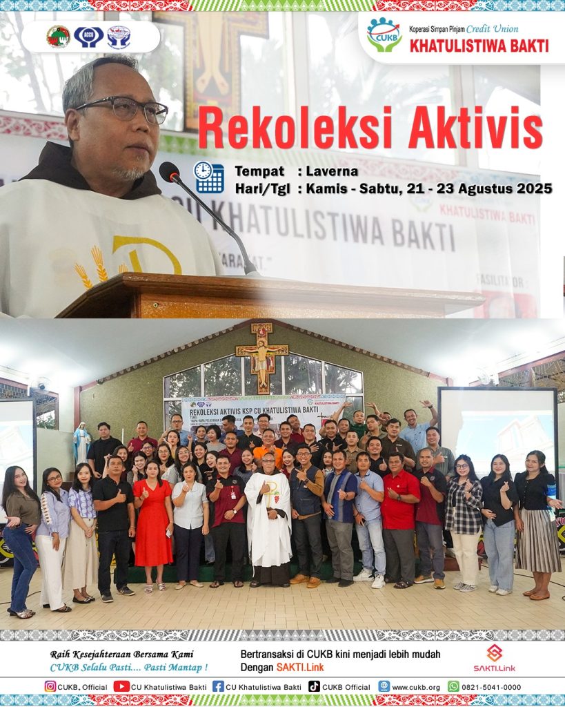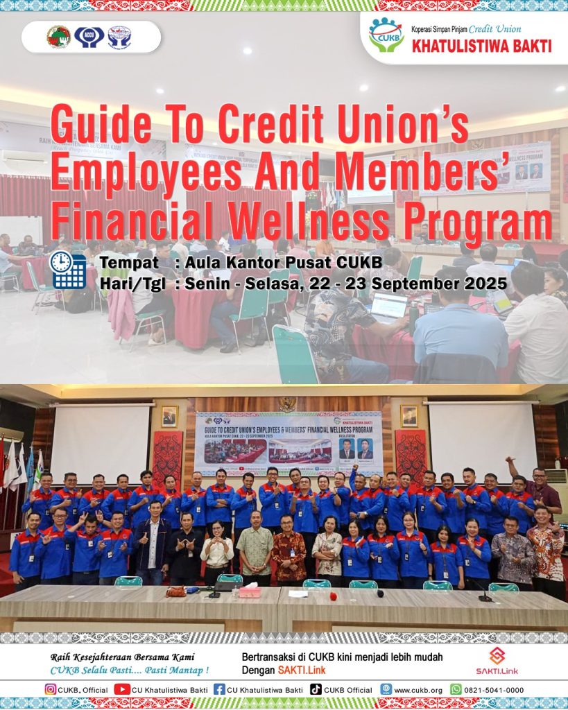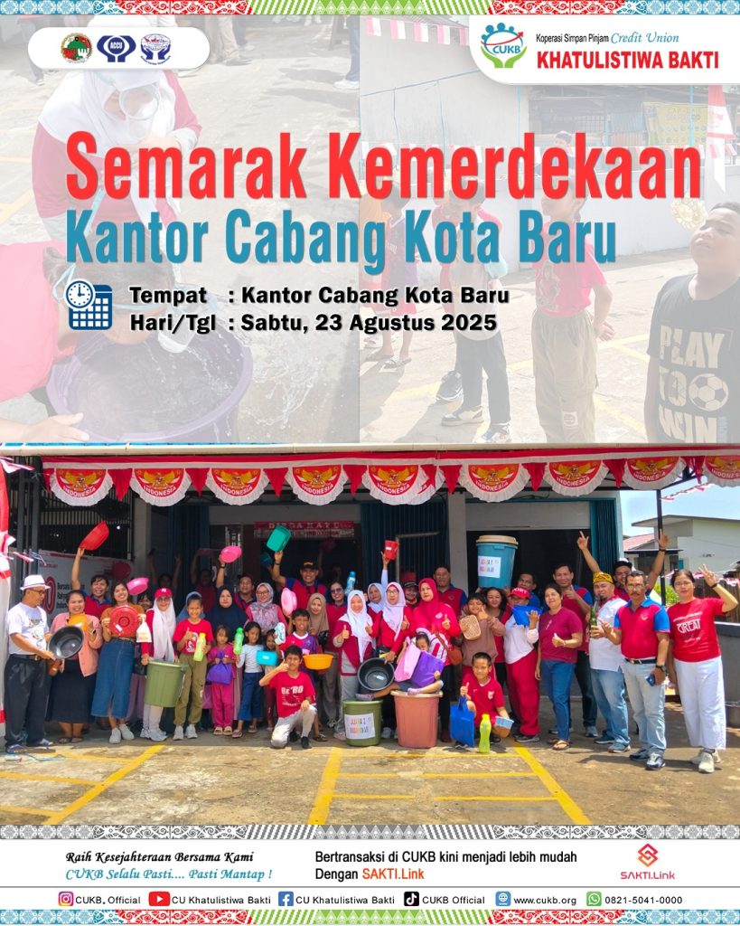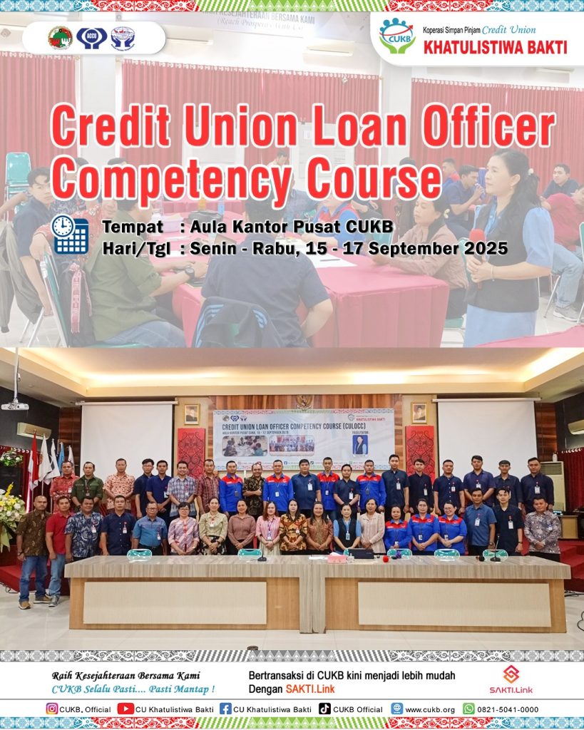 Jadwal Pendidikan Dasar Credit Union Khatulistiwa Bakti September 2025 Tempat Pelayanan : Kantor Cabang Padang Tikar Tanggal Kegiatan : Rabu, 08 Oktober 2025 Fasilitator : Armidun Tempat Pelaksanaan : Jalan Medan Seri Gg. Amanah Tempat Pelayanan : Kantor Cabang Kuala Behe Tanggal Kegiatan : Rabu, 08 Oktober 2025 Fasilitator : Heryadi, S,H. Tempat Pelaksanaan : Desa Tanjung Balai Tempat Pelayanan : Kantor Cabang Teluk Pakedai Tanggal Kegiatan : Kamis, 09 Oktober 2025 Fasilitator : Marsius, S.P. Tempat Pelaksanaan : Desa Seruat Tiga Tempat Pelayanan : Kantor Cabang Tayan Tanggal Kegiatan : Kamis, 09 Oktober 2025 Fasilitator : Anong, A.Md. Tempat Pelaksanan : Empawah Tempat Pelayanan : Kantor Cabang Sungai Ambawang Tanggal Kegiatan : Kamis, 09 Oktober 2025 Fasilitator : Arkadeus Fipianto, S.P. Tempat Pelaksanan : KC Sungai Ambawang Tempat Pelayanan : Kantor Cabang Sanggau Ledo Tanggal Kegiatan : Jumat, 10 Oktober 2025 Fasilitator : Farnandes Nicolas Gagasak, A.Md. Tempat Pelaksanan : Kantor Cabang Sanggau Ledo Tempat Pelayanan : Kantor Cabang Sekilap Tanggal Kegiatan : Jumat, 10 Oktober 2025 Fasilitator : Albertus Yudiantono, S.E. Tempat Pelaksanan : Mandor Tempat Pelayanan : Kantor Cabang Terentang Tanggal Kegiatan : Jumat, 10 Oktober 2025 Fasilitator : Yosef, S.E. Tempat Pelaksanan : Ruang Diklat KC Terentang Tempat Pelayanan : Kantor Cabang Terentang Tanggal Kegiatan : Jumat, 12 September 2025 Fasilitator : Yosef, S.E. Tempat Pelaksanaan : Sungai Asam Tempat Pelayanan : Kantor Cabang Tanjung Hulu Tanggal Kegiatan : Jumat, 10 Oktober 2025 Fasilitator : Amandus Mandus Tempat Pelaksanaan : Desa Sungai Enau Tempat Pelayanan : Kantor Cabang Singkawang Tanggal Kegiatan : Selasa, 14 Oktober 2025 Fasilitator : Selvi, S.E. Tempat Pelaksanaan : Kelurahan Pajintan Tempat Pelayanan : Kantor Cabang Batu Ampar Tanggal Kegiatan : Kamis, 16 Oktober 2025 Fasilitator : Adrianus Naan, S.E. Tempat Pelaksanaan : Aula KC Batu Ampar Tempat Pelayanan : Kantor Cabang Senakin Tanggal Kegiatan : Kamis, 16 Oktober 2025 Fasilitator : Hermas Nusi, S.E. Tempat Pelaksanaan : Aula KC Senakin Tempat Pelayanan : Kantor Cabang Pakumbang Tanggal Kegiatan : Kamis, 16 Oktober 2025 Fasilitator : Rani Suryadi, S.E. Tempat Pelaksanaan : Dusun Agak Hulu Tempat Pelayanan : Kantor Cabang Anjongan Tanggal Kegiatan : Jumat, 17 Oktober 2025 Fasilitator : Adrianus Marantika, S.M. Tempat Pelaksanaan : Aula KC Anjongan Tempat Pelayanan : Kantor Cabang Balai Kota Tanggal Kegiatan : Jumat, 17 Oktober 2025 Fasilitator : Fhilipinus Berneo Pangalayo, S.M. Tempat Pelaksanaan : Aula Kantor Pusat Tempat Pelayanan : Kantor Cabang Batang Tarang Tanggal Kegiatan : Jumat, 17 Oktober 2025 Fasilitator : Adrianus, S.M. Tempat Pelaksanaan : Kantor Cabang Batang Tarang Tempat Pelayanan : Kantor Cabang Simpang Tiga Tanggal Kegiatan : Jumat, 17 Oktober 2025 Fasilitator : Jeny Venalosa, S.E. Tempat Pelaksanaan : Aula Kantor Simpang Tiga Tempat Pelayanan : Kantor Cabang Kubu Tanggal Kegiatan : Jumat, 17 Oktober 2025 Fasilitator : Doren, S.P. Tempat Pelaksanaan : Jangkang Dua Tempat Pelayanan : Kantor Cabang Kuala Behe Tanggal Kegiatan : Rabu, 29 Oktober 2025 Fasilitator : Heryadi, S,H. Tempat Pelaksanaan : Desa Temahar Bagi anggota yang mau mengikuti Pendidikan Dasar silahkan menghubungi kantor Cabang atau WhatApp(WA) ke 0821-4843-91-43 dengan menyebutkan, Nama, Nomor buku Anggota, Kantor Cabang. Bagi Peserta yang mengikuti sampai selesai akan mendapatkan sertifikat . Demikian pengumuman ini di samapaikan atas perhatiaannya kami ucapkan terima kasih.