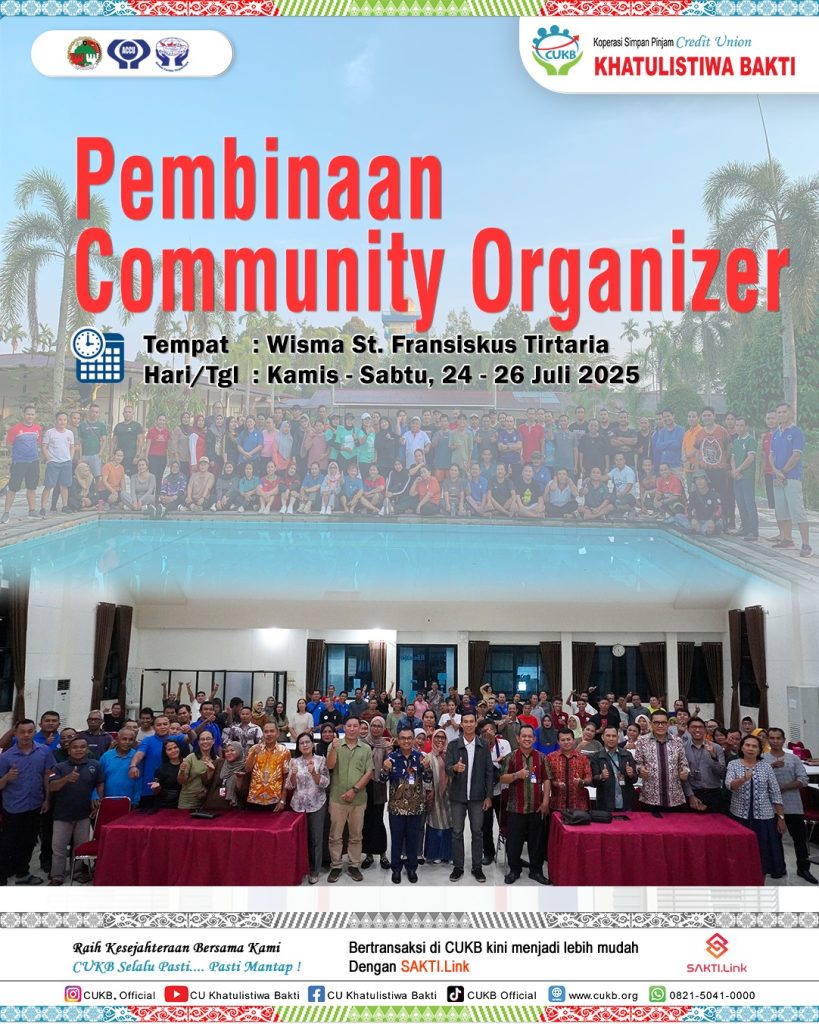 Wisma St. Fransiskus Tirtaria, 24-26 Juli 2025 KSP CU Khatulistiwa Bakti telah menyelenggarakan kegiatan Pembinaan Community Organizer (CO) pada tanggal 24 hingga 26 Juli 2025 bertempat di Wisma St. Fransiskus Tirtaria. Kegiatan ini diikuti oleh seluruh Community Organizer dari 28 Kantor Cabang. Kegiatan secara resmi dibuka oleh Drs. Nicolaus Apin, selaku Ketua Pengurus, dan turut dihadiri oleh jajaran Penasihat, Pengurus, Pengawas, serta General Manager. Selama tiga hari pelaksanaan, para CO dibekali dengan berbagai materi yang bertujuan untuk memperkuat kapasitas mereka dalam mendampingi anggota di lapangan. Adapun materi yang diberikan meliputi:Pembuatan Pupuk JADAM sebagai bentuk edukasi lingkungan dan kemandirian pertanian, Pendekatan Asset-Based Community Development (ABCD) dalam upaya pemberdayaan anggota, Sesi diskusi terbuka, di mana para CO menyampaikan masukan dan saran langsung kepada Pengurus, sebagai bagian dari evaluasi dan pengembangan organisasi. Selain itu, Pengurus juga menyampaikan informasi terkait produk dan layanan KSP CU Khatulistiwa Bakti untuk memperkuat pemahaman CO dalam memberikan edukasi dan pendampingan yang optimal kepada anggota. Sebagai garda terdepan dalam pelayanan, peran CO sangat vital dalam menjaga kedekatan dengan anggota. Oleh karena itu, pembinaan ini menjadi momentum penting untuk meningkatkan kualitas pendampingan dan pemberdayaan, sekaligus sebagai ruang refleksi bersama atas dinamika di lapangan. Kegiatan ini juga menjadi wadah untuk mempererat solidaritas dan kebersamaan antar CO dari seluruh wilayah pelayanan. Menutup kegiatan, KSP CU Khatulistiwa Bakti memberikan penghargaan kepada CO yang telah mengabdi selama 10 dan 15 tahun, serta penghargaan khusus kepada CO dengan capaian perekrutan anggota terbanyak pada Tahun Buku 2025, yaitu: Marsius – KC Ngabang (276 anggota), Acam – KC Kuala Behe (173 anggota), Jepro – KC Kuala Behe (164 anggota), Rianto – KC Darit (150 anggota), Kakang – KC Simpang Tiga (139 anggota). Melalui pembinaan yang berkelanjutan, KSP CU Khatulistiwa Bakti berkomitmen untuk terus memperkuat kapasitas SDM-nya demi mewujudkan pelayanan yang unggul, inklusif, dan berdaya guna bagi seluruh anggota.